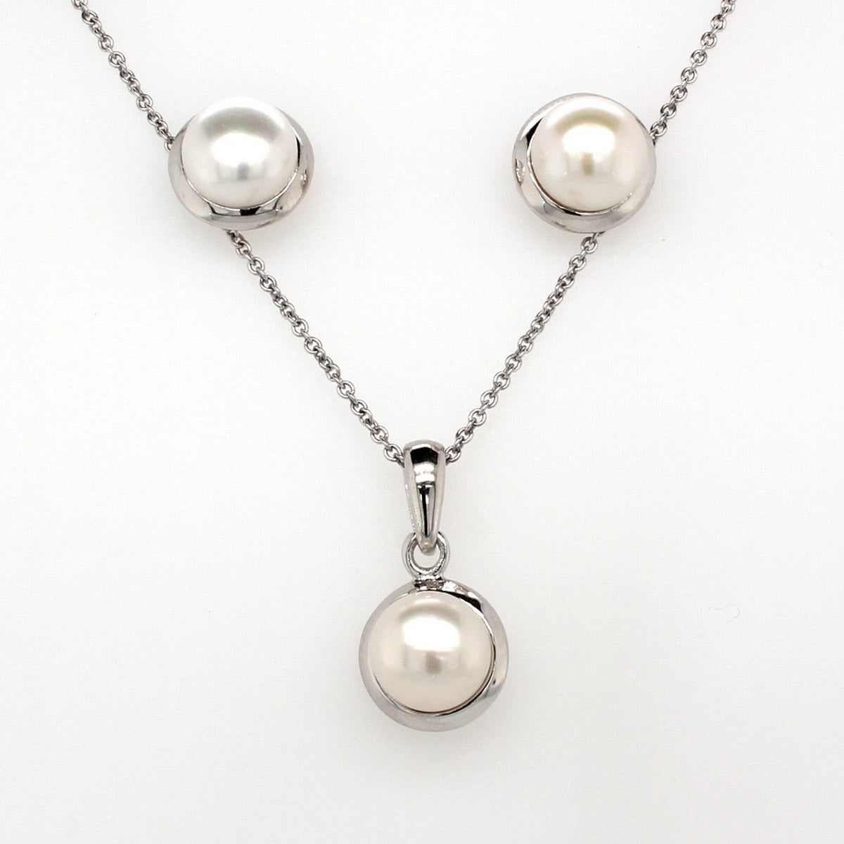 silver beaded aaa freshwater pearl necklace 8-8.5mm adjustable 40-45cm