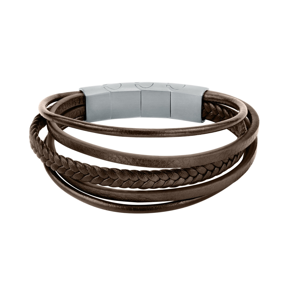 sector jewels bandy stainless steel bracelet with brown pu leather strap and tag with hammer finishing