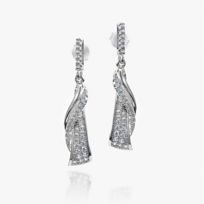 REAL EFFECT DOUBLE TWIST PARTLY STONESET DROP EARRINGS