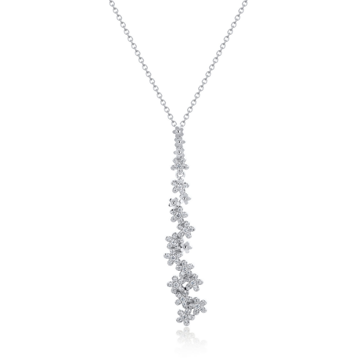 partially stone set floral cluster pendant necklace with cubic zirconia in sterling silver