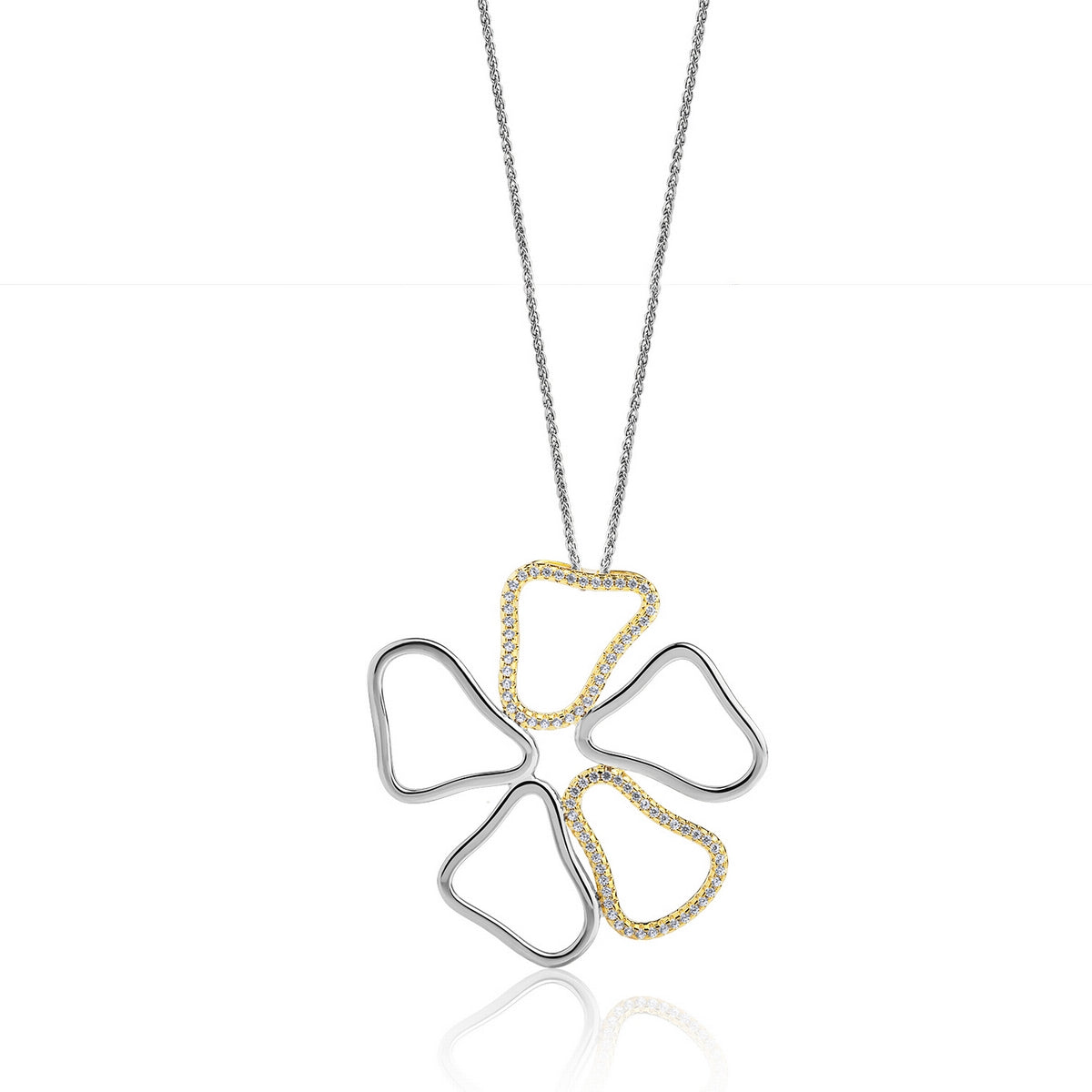 REAL EFFECT FOWER SHAPE PENDANT WITH GOLD STONESET