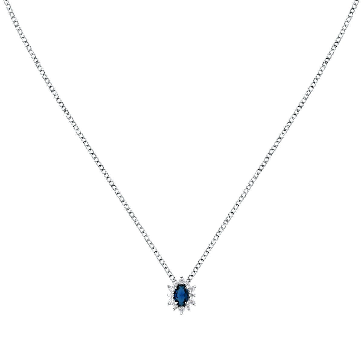 TESORI PENDANT 925 SILVER WHITE WITH SAPPHIRE CENTRAL CZ 38+4CM