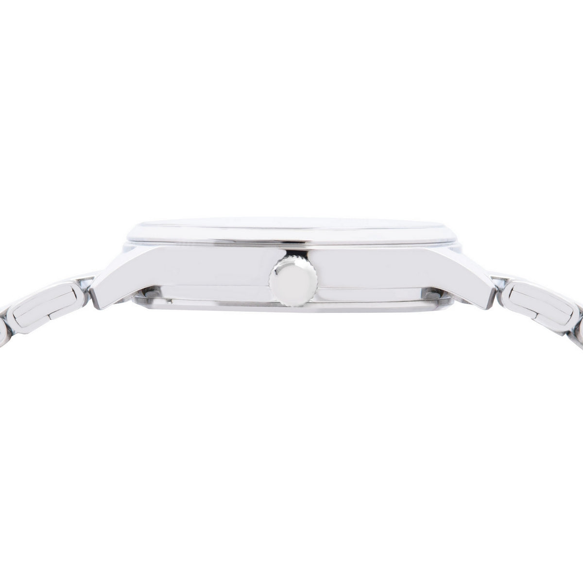 MOVEMENT TYPE: Quartz MOVEMENT CALIBRE: PC32 BAND TYPE: Stainless Steel Bracelet CLASP TYPE: Z-Clasp DIAL COLOUR: White WATER RESISTANCE (Metres): 50 CASE WIDTH: 29mm CASE DEPTH: 8mm GLASS TYPE: Mineral Crystal DATE FUNCTION: Date Only STONE TYPE: