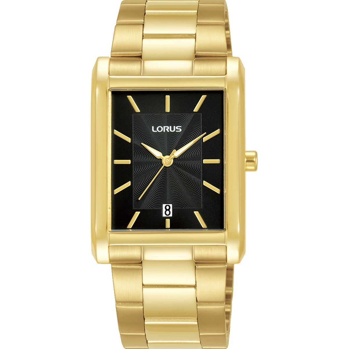 LORUS QUARTZ GENTS GOLD PLATED BLACK DIAL BRACELET WATCH