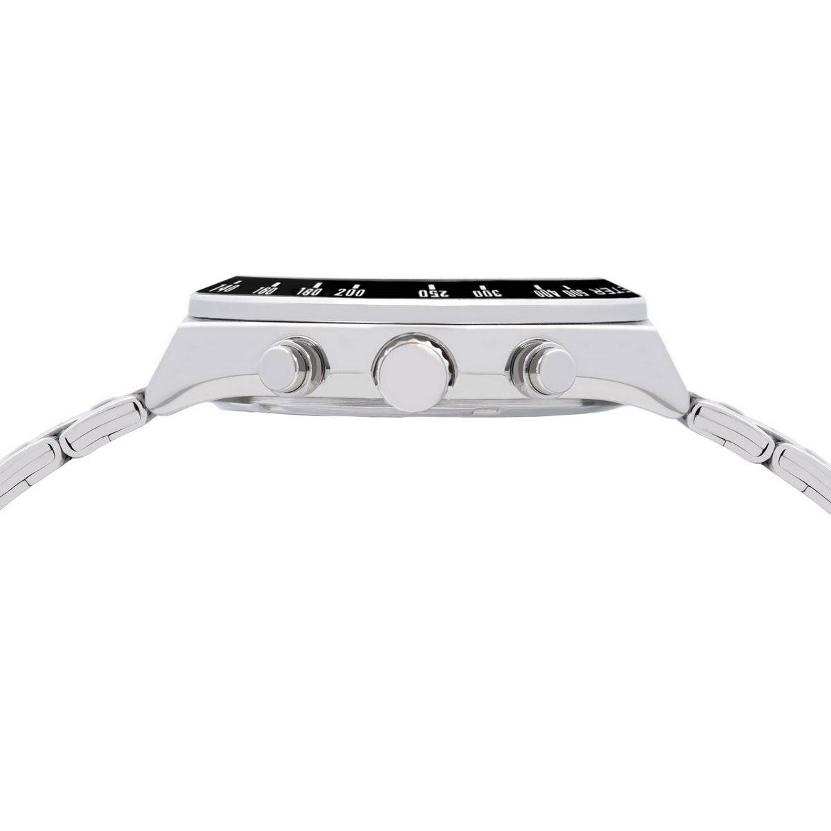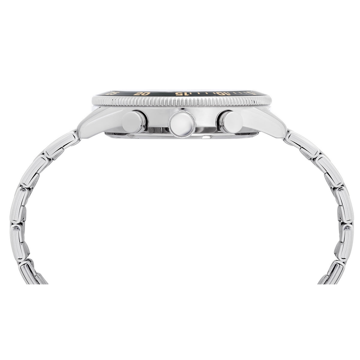MOVEMENT TYPE: Quartz MOVEMENT CALIBRE: PC33 BAND TYPE: Stainless Steel Bracelet CLASP TYPE: Z-Clasp DIAL COLOUR: Black WATER RESISTANCE (Metres): 100 CASE WIDTH: 42mm CASE DEPTH: 10.2mm GLASS TYPE: Mineral Crystal DATE FUNCTION: Day and Date STONE TYPE: