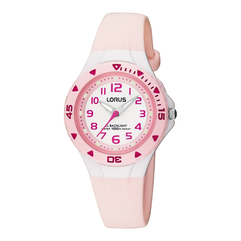 lorus quartz time teacher kids white dial pink silicone strap watch