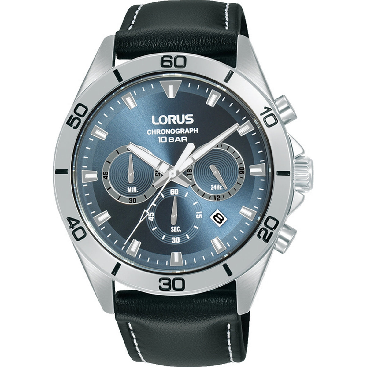 lorus quartz chronograph gents stainless steel blue dial strap watch