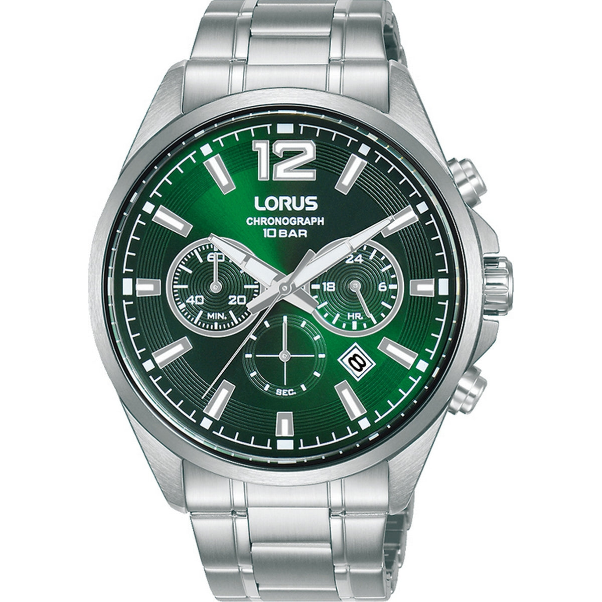 lorus quartz chronograph gents stainless steel green dial bracelet watch