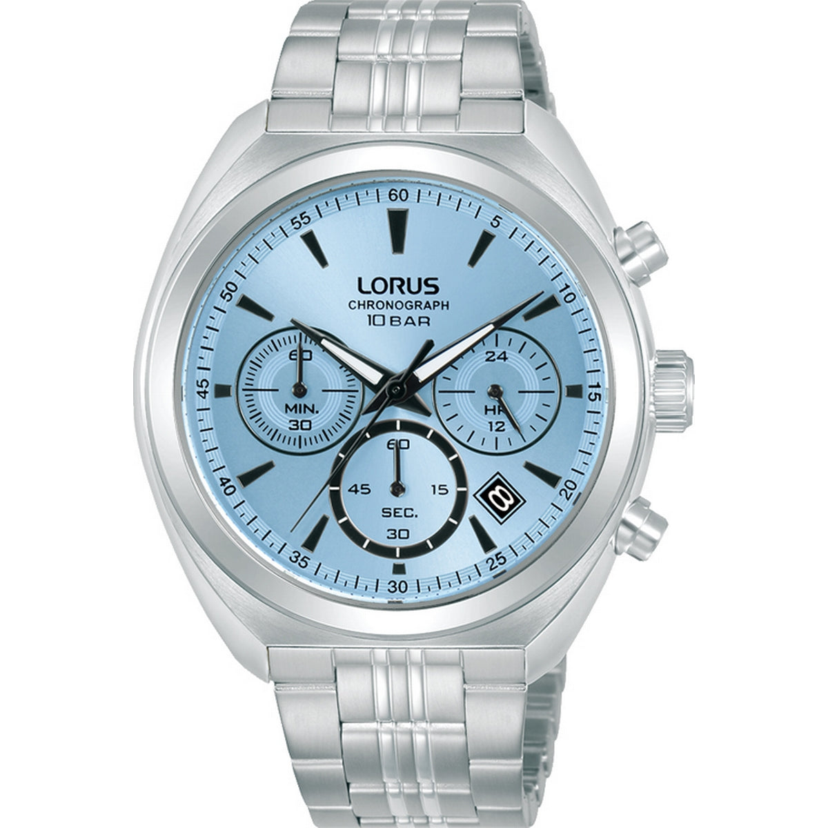 lorus quartz chronograph gents stainless steel blue dial bracelet watch