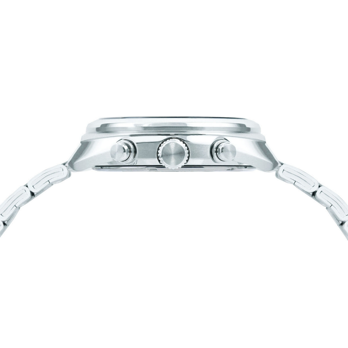 MOVEMENT TYPE: Quartz MOVEMENT CALIBRE: VD53 BAND TYPE: Stainless Steel Bracelet CLASP TYPE: Z-Clasp DIAL COLOUR: White WATER RESISTANCE (Metres): 100 CASE WIDTH: 43mm CASE DEPTH: GLASS TYPE: Mineral Crystal DATE FUNCTION: Date Only STONE TYPE: