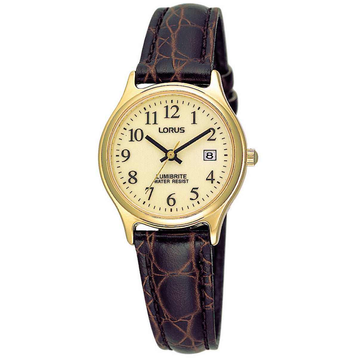 LORUS QUARTZ LADIES GOLD PLATED WHITE DIAL STRAP WATCH