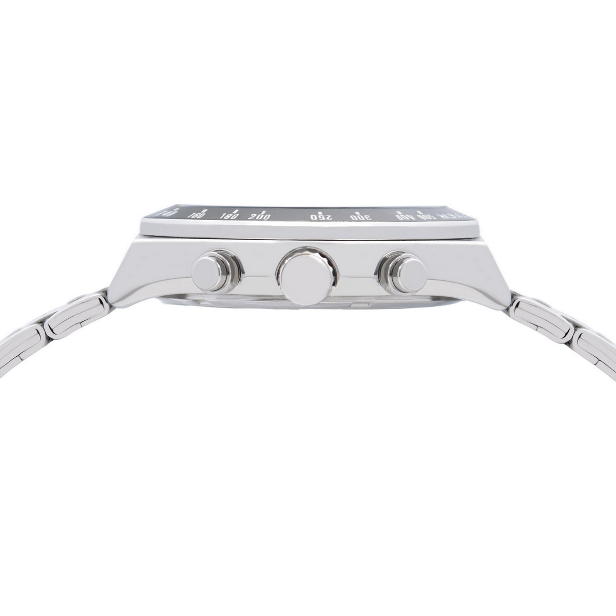 MOVEMENT TYPE: Quartz MOVEMENT CALIBRE: VD57 BAND TYPE: Stainless Steel Bracelet CLASP TYPE: Z-Clasp DIAL COLOUR: Black WATER RESISTANCE (Metres): 100 CASE WIDTH: 43mm CASE DEPTH: 114mm GLASS TYPE: Mineral Crystal DATE FUNCTION: Date Only STONE TYPE: