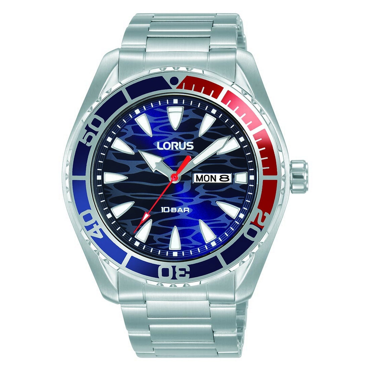 lorus quartz gents stainless steel red dial bracelet watch