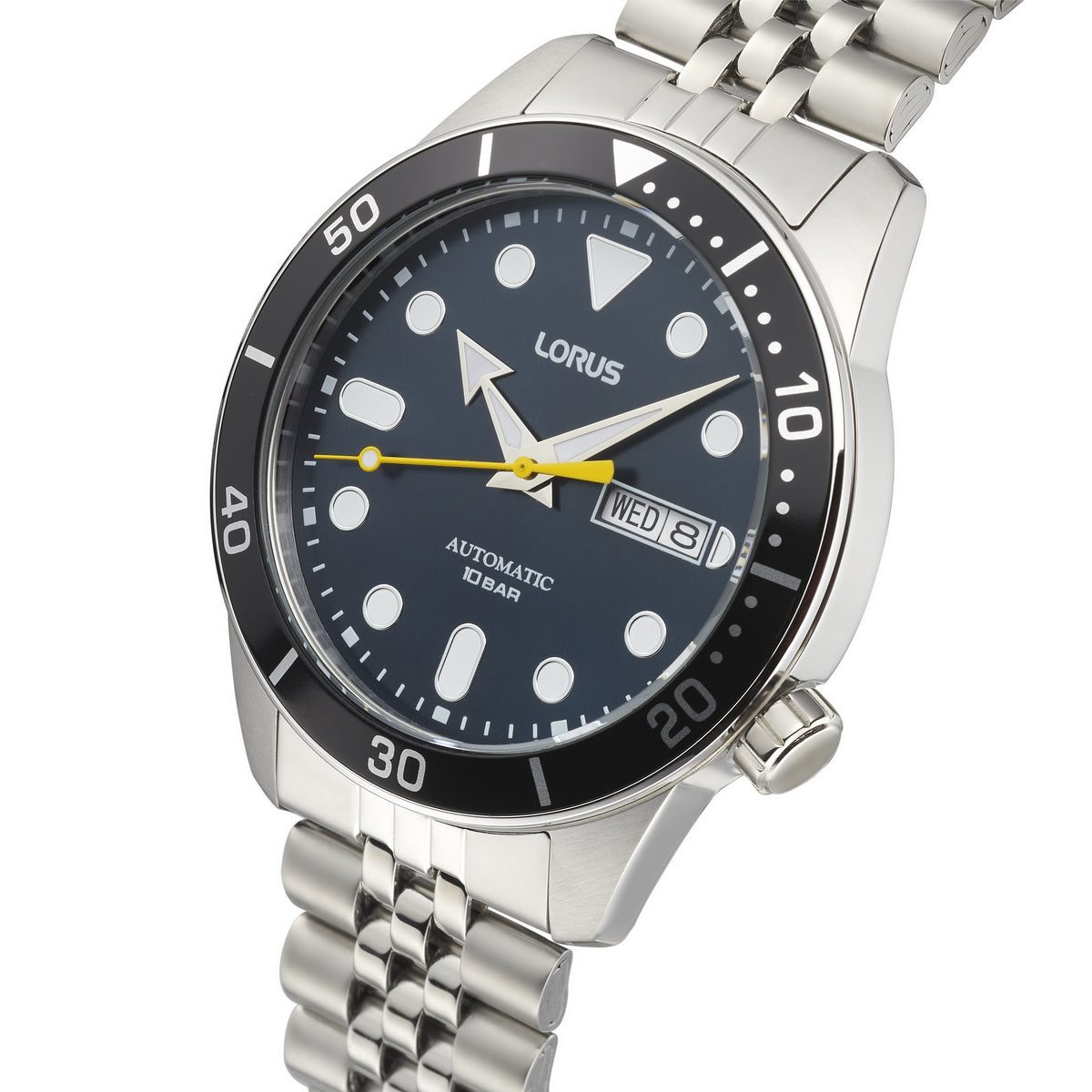 lorus automatic gents stainless steel blue dial bracelet watch