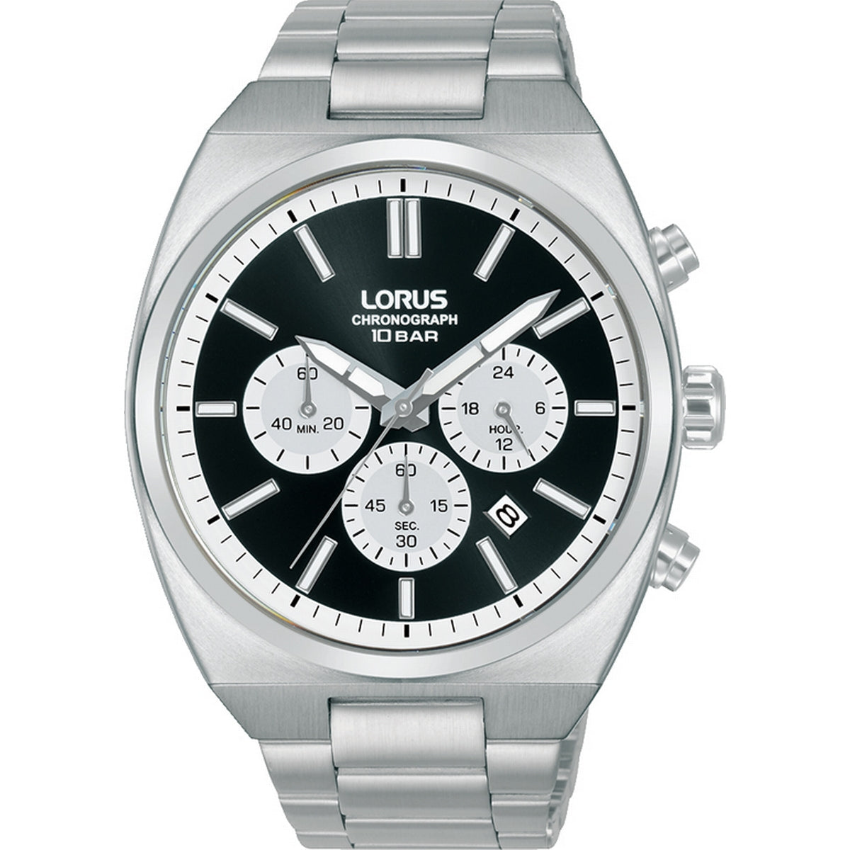 LORUS QUARTZ CHRONOGRAPH GENTS STAINLESS STEEL BLACK DIAL BRACELET WATCH