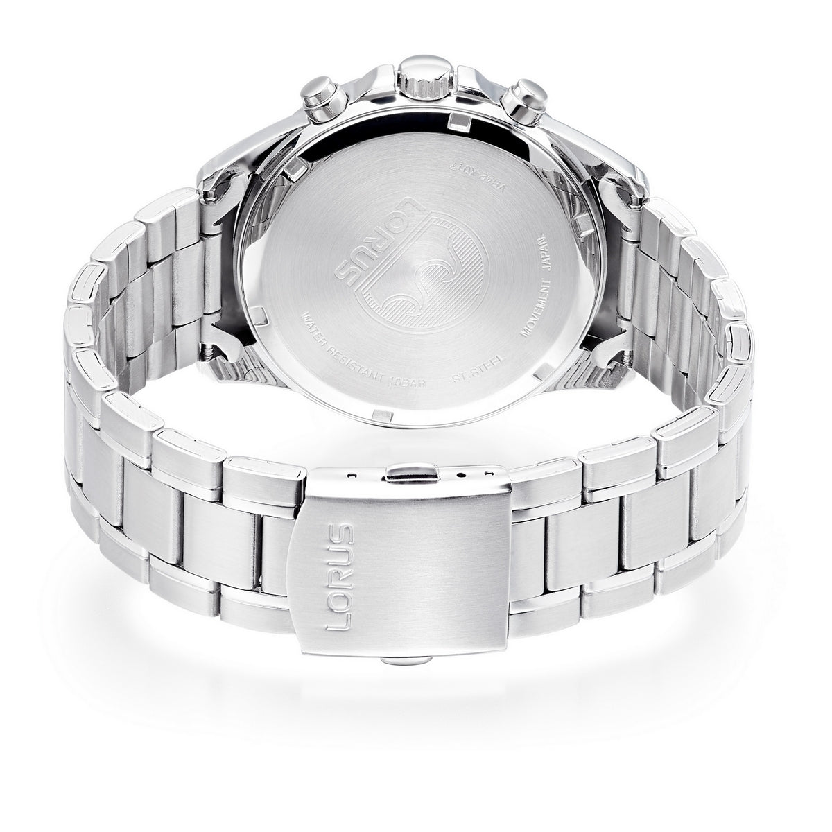 lorus quartz chronograph gents stainless steel white dial bracelet watch