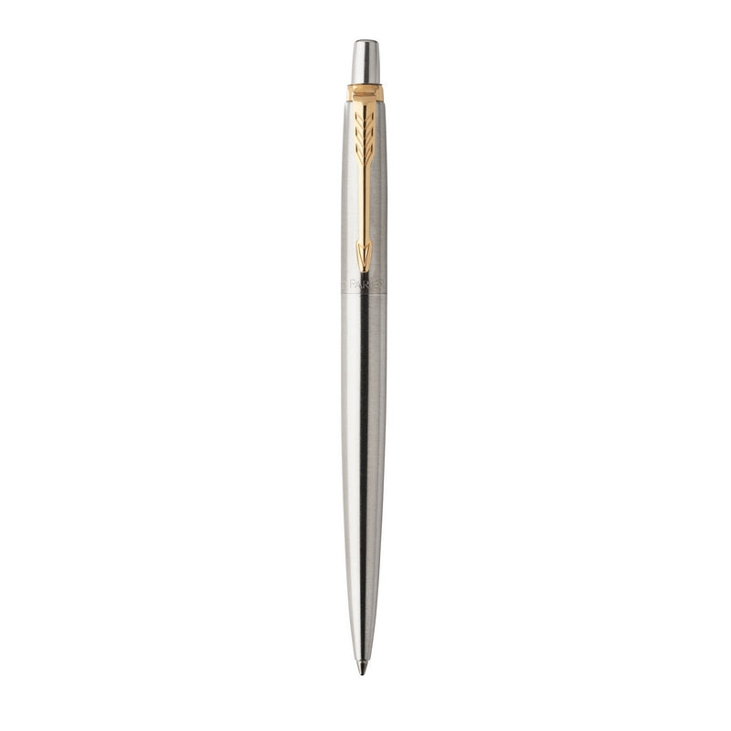 Parker Jotter GT Ballpoint Pen | Stainless Steel with Golden Trim | Medium Point | Handwriting Pens & Stationery Supplies | Blue Ink | Gift Box