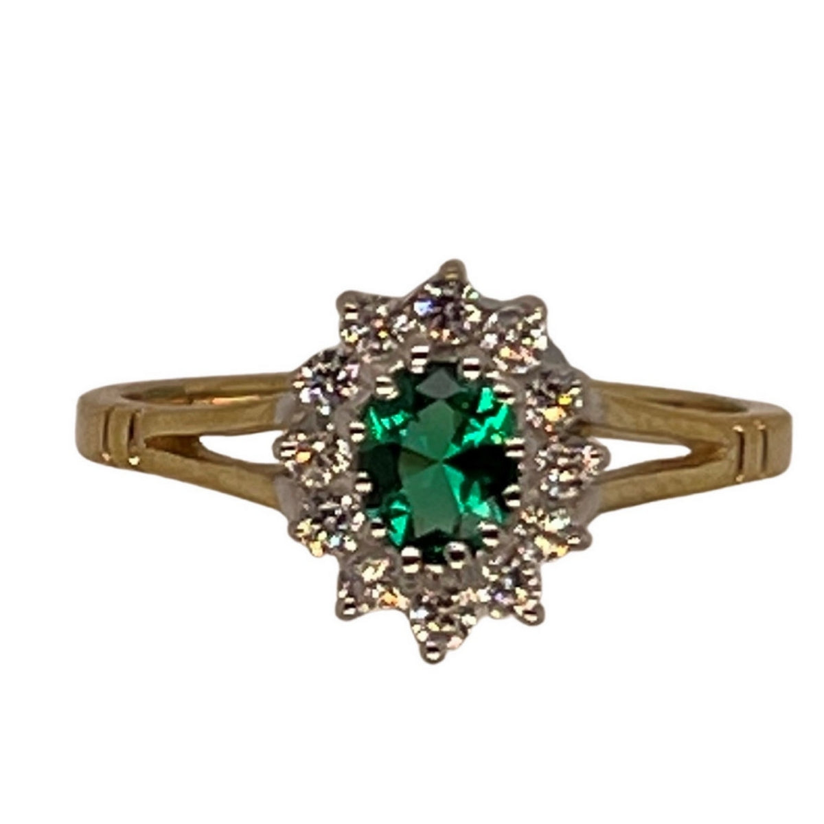 9ct Gold (375) Ring Yellow Gold 1.5g Green Oval CZ Emerald Prong Set_L