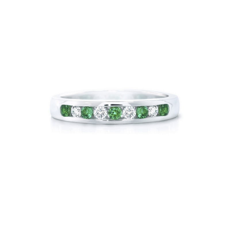Stylish sterling silver ring, with Emerald like stones Size 55